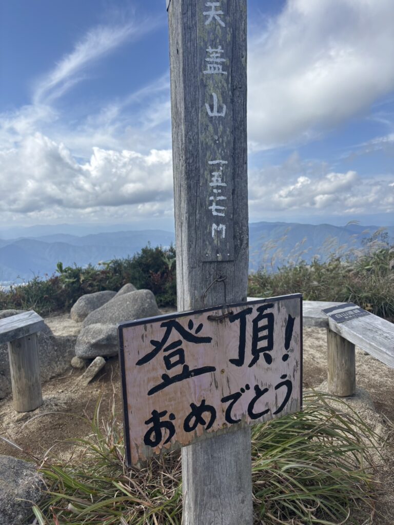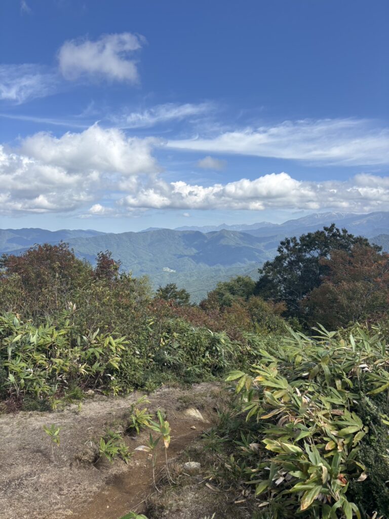 初めての複数人登山でしたが、道中は会話が尽きず、笑っていたらいつの間にか山頂に到着! 天気も最高で、山頂からは周囲の山々が一望できました。いつかはあの剱岳にも挑戦したい…🔥